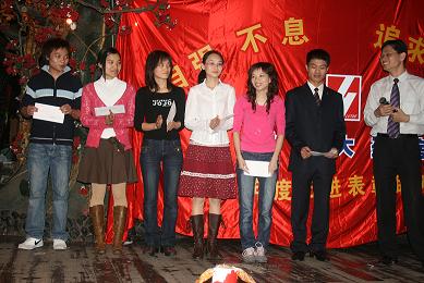 下午4:00整,在《好日子》歡快的歌舞中,表彰聯(lián)歡會正式拉開了序幕。會上共頒發(fā)了九個獎項,分別是最佳員工獎6人,最佳藥師獎2人,最佳新人獎、最佳參與獎、最佳貢獻獎各1人,最佳店長獎3人,最佳門店獎2個,還有兩個特殊的獎項:一是半年度毛利考核指標完成相對值、絕對值各前3名的門店,二是2000年8月前入職的老員工獎。頒獎過程中還穿插了員工們自編、自導、自演的小節(jié)目。他們用優(yōu)美的舞姿、甜美的歌聲、俏皮搞笑的小品為杰出的先進代表們喝彩、祝福,現(xiàn)場氣氛非?;钴S,高潮迭起,一張張如花的笑靨遨游在一片歡樂的海洋……最后,在《感恩的心》的優(yōu)美的旋律和熱烈的掌聲中,活動暫告一個段落。