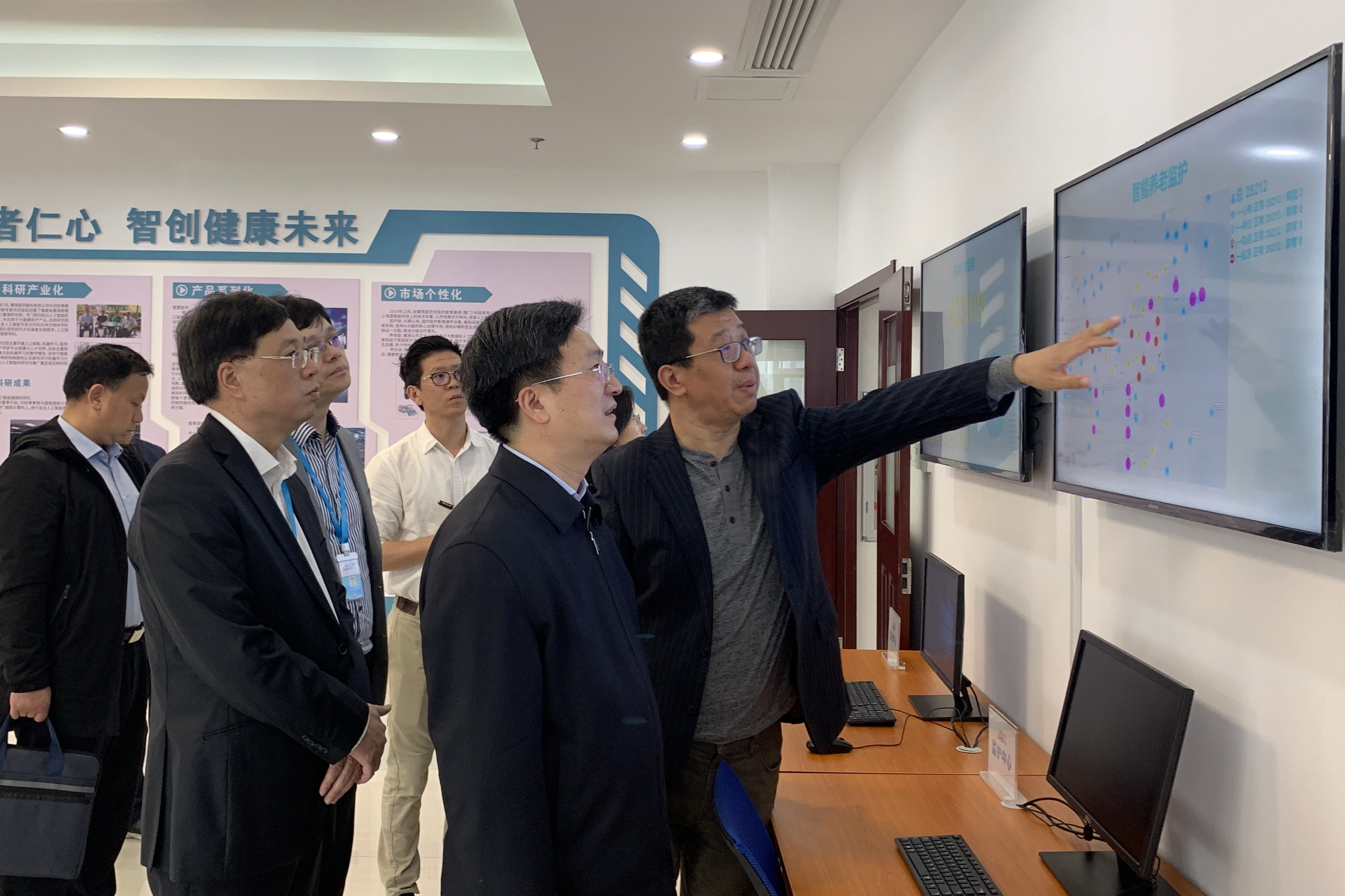 隨后,施副局長一行參觀了鷺燕醫(yī)藥人工智能產(chǎn)品體驗館,鷺燕醫(yī)藥首席科學(xué)家劉知青教授重點介紹了鷺燕醫(yī)藥人工智能技術(shù)在醫(yī)療領(lǐng)域的創(chuàng)新應(yīng)用,施副局長親自體驗了鷺燕醫(yī)藥旗下智慧康源科技公司推出的智能心電檢測計。